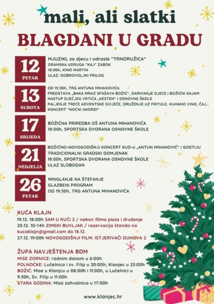 Grad Klanjec pripremio je “Male, ali slatke blagdane u gradu”.