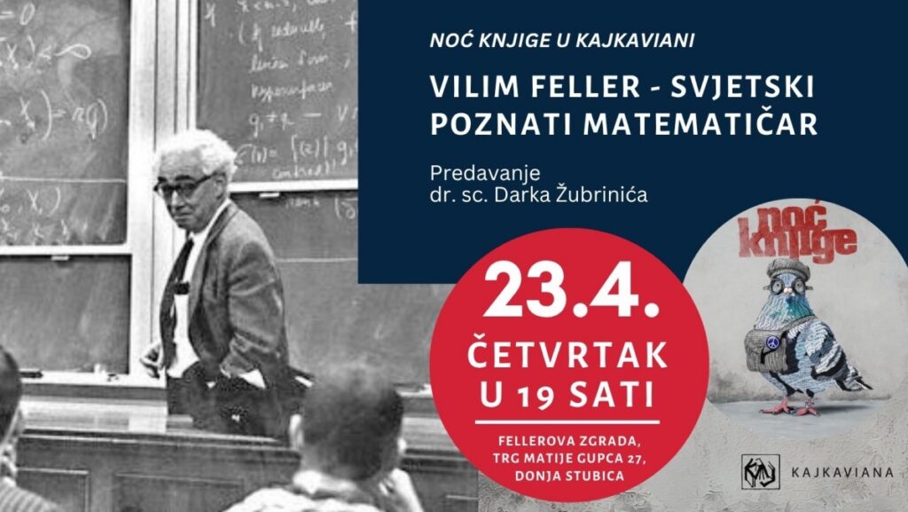 U četvrtak, 23. travnja 2026. godine s početkom u 19 sati, u Fellerovoj zgradi održat će se predavanje „Vilim Feller – svjetski poznati matematičar” povodom Noći knjige.