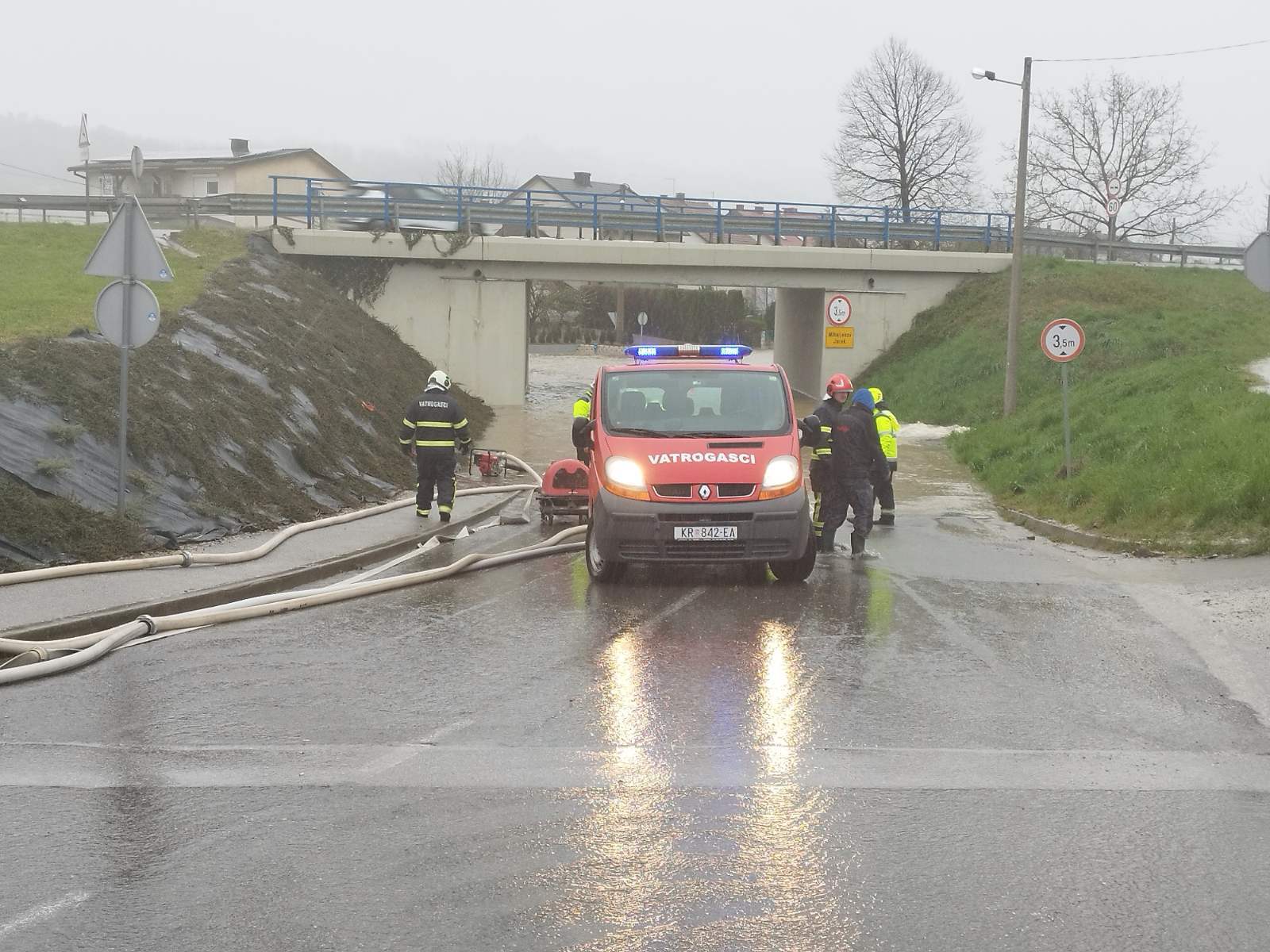 Zbog ispumpavanja vode ispod nadvožnjaka u Polju Krapinskom, cesta je trenutno zatvorena za promet.