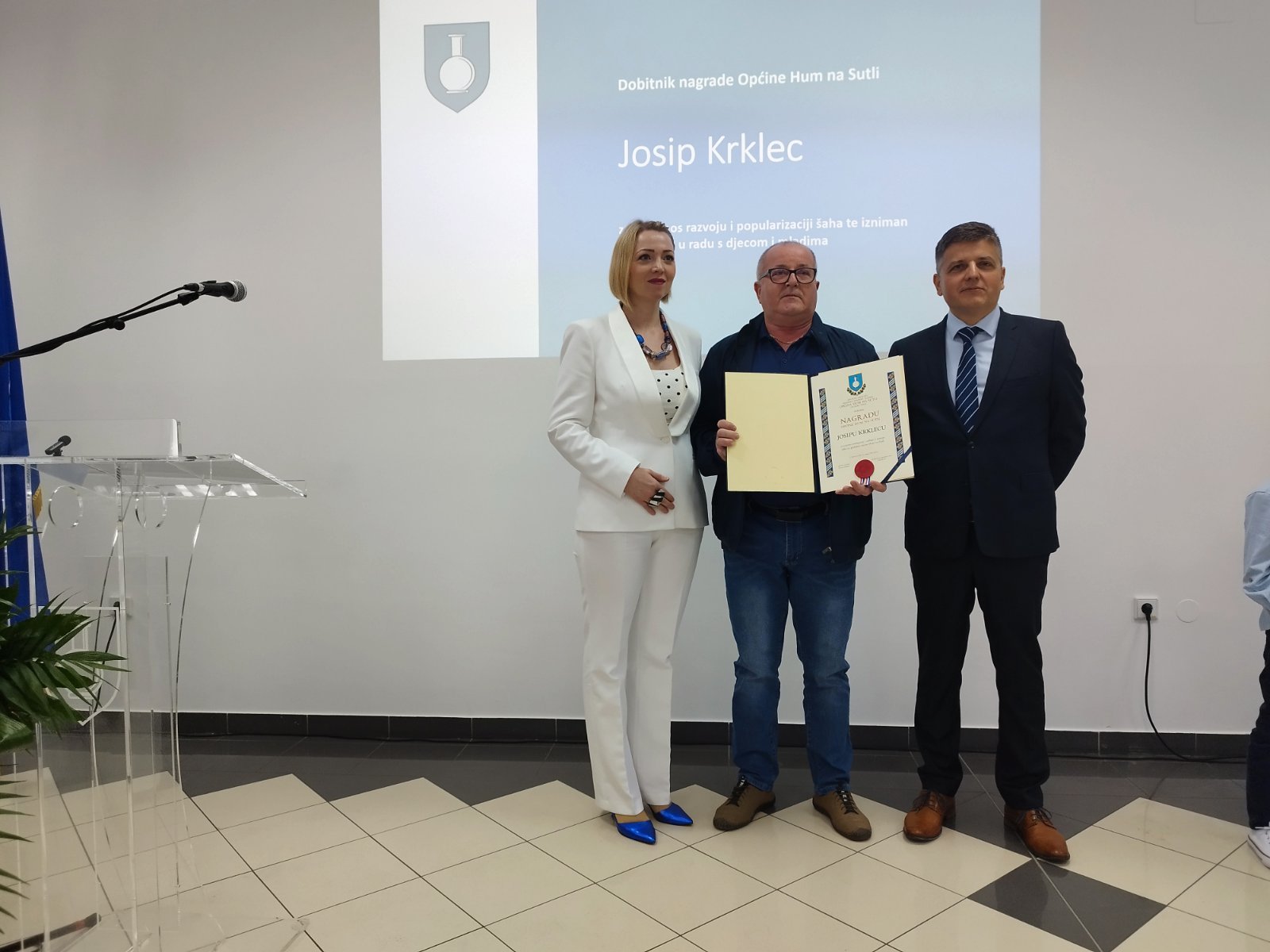 Nagrada Općine Hum na Sutli za iznimno postignuće i zasluge u razvoju šaha dodijeljena je Josipu Krklecu.