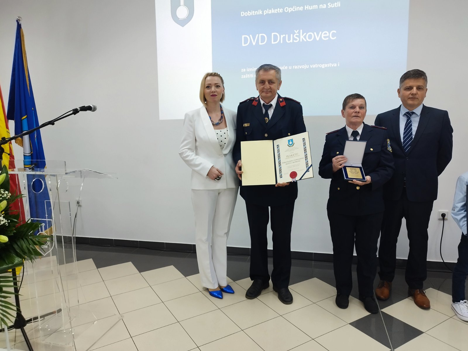 Plaketa Općine Hum na Sutli za iznimno postignuće u razvoju vatrogastva i zaštiti od požara dodijeljena je Dobrovoljnom vatrogasnom društvu Druškovec.