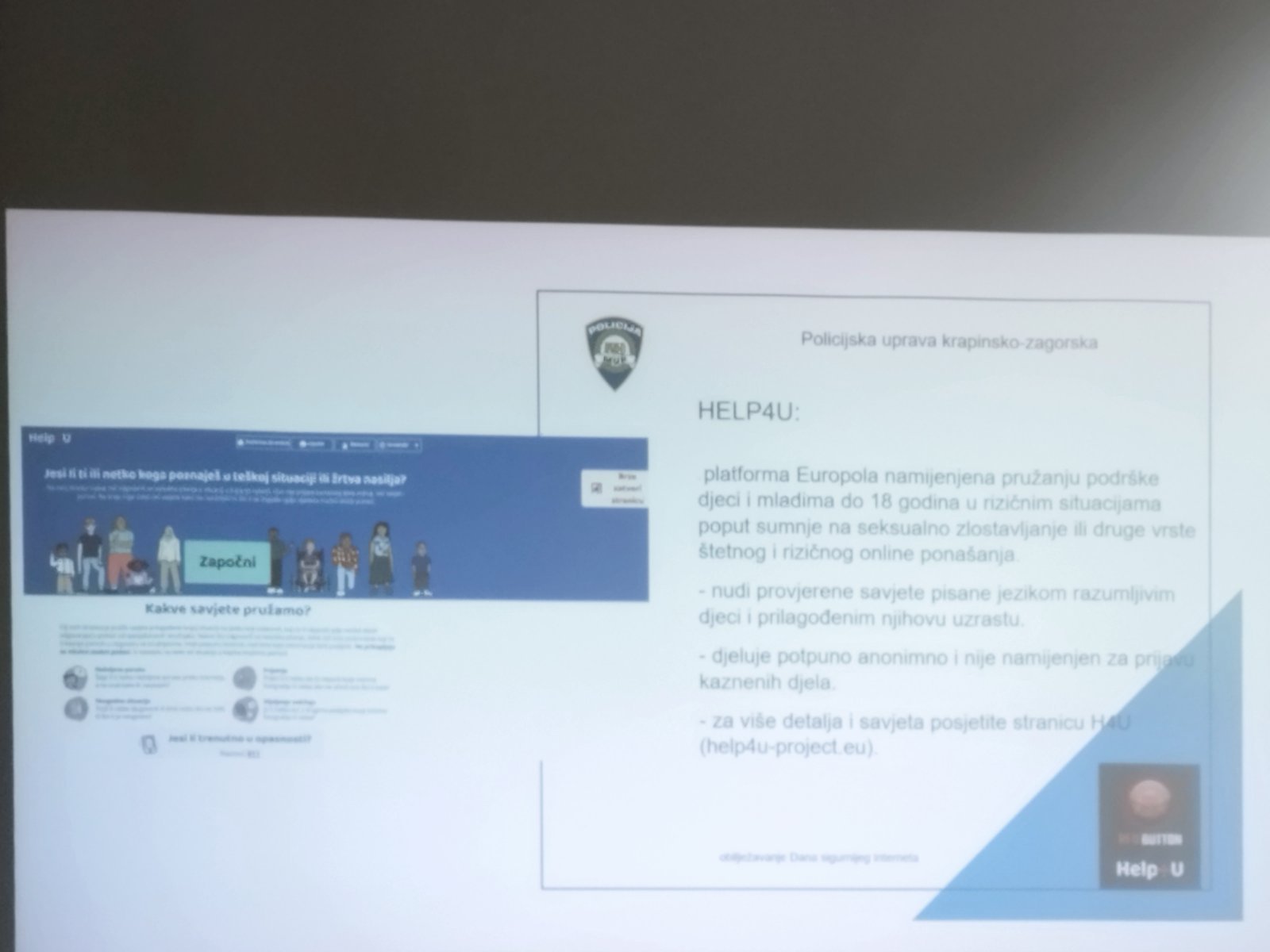Poseban naglasak stavljen je i na dostupne digitalne alate. Predstavljena je platforma Help4U, inicijativa Europola, namijenjena djeci do 18 godina. Putem kratkih upitnika djeca mogu dobiti informaciju nalaze li se u rizičnoj ili uznemirujućoj situaciji te kome se mogu obratiti za pomoć.