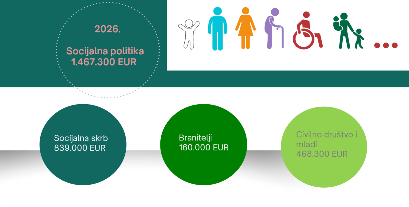 -To je povećanje od 21% u odnosu na godinu prije i ta sredstva razdijelimo. Za socijalnu skrb smo izdvojili 584.000 eura, za područje skrbi o braniteljima i njihovim obiteljima 171.000 eura i za područje podrške i radu sa civilnim društvom i mladima nešto manje od 500.000 eura-navela je Petek.