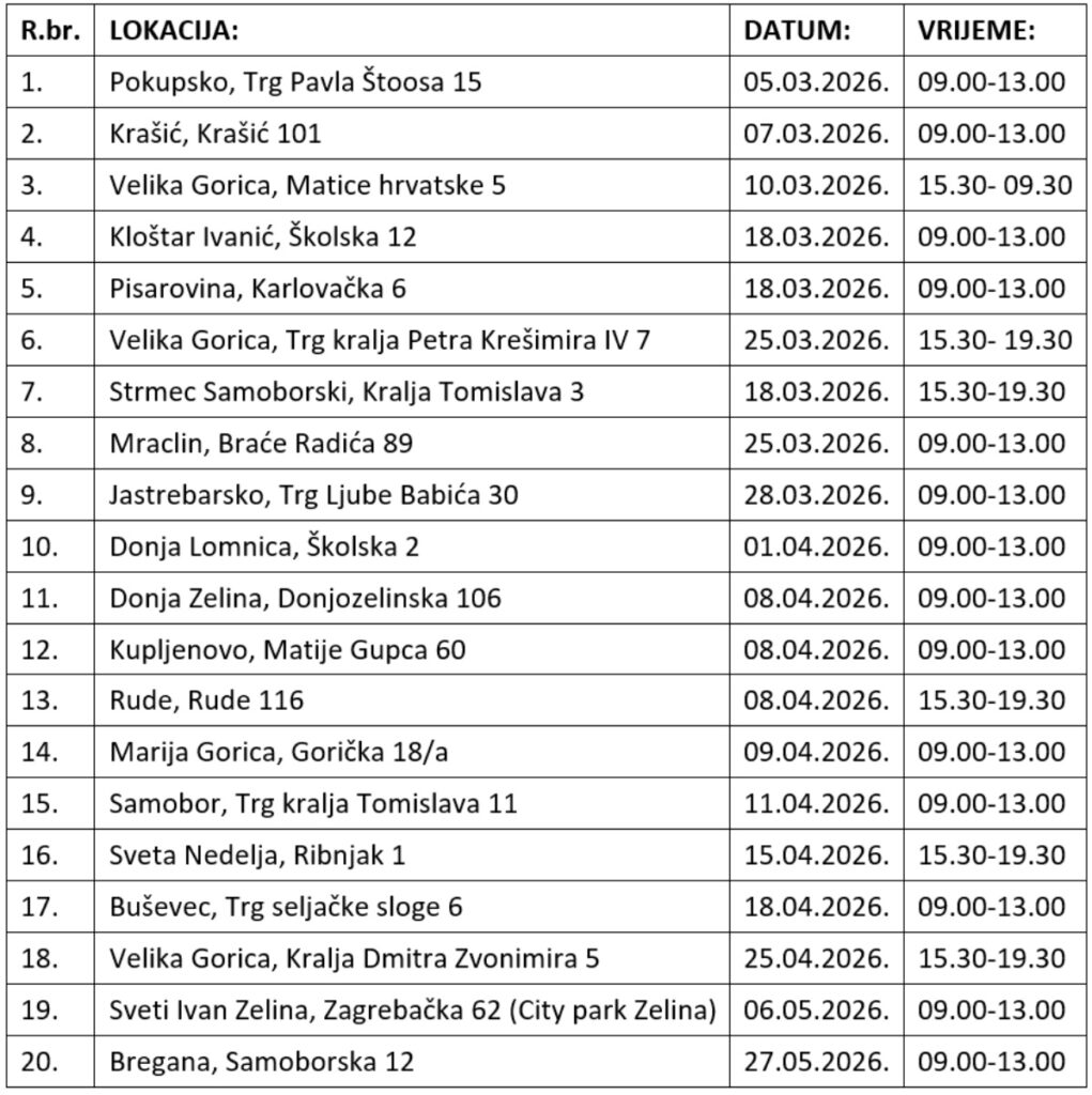 Program će provoditi dermatovenerolozi iz Specijalne bolnice Naftalan u prostorijama Ljekarni Zagrebačke županije i, iznimno u Zaprešiću, u prostoru Bioteke Zagrebačke županije prema rasporedu u tablici. Obavezne su telefonske rezervacije termina, a brojevi su dostupni na: https://www.ljekarne-zz.hr/prodajna-mjesta/.