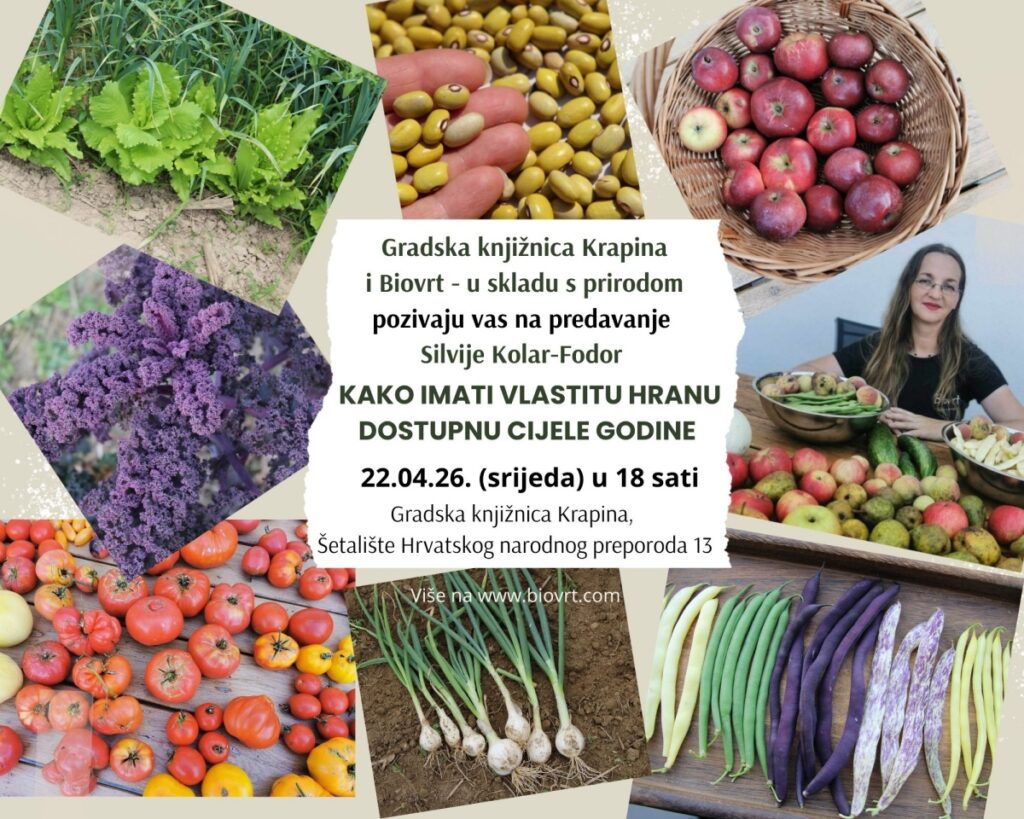 U suradnji s udrugom „Biovrt – u skladu s prirodom“ bit će održano predavanje pod nazivom „Kako imati vlastitu hranu dostupnu cijele godine“. Predavanje će održati Silvija Kolar-Fodor, koja će sudionicima približiti načine prirodnog uzgoja hrane, planiranje vrta kroz cijelu godinu te male, ali važne korake prema samoodrživijem i zdravijem načinu života.