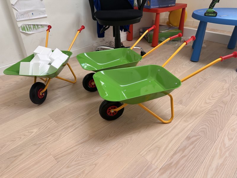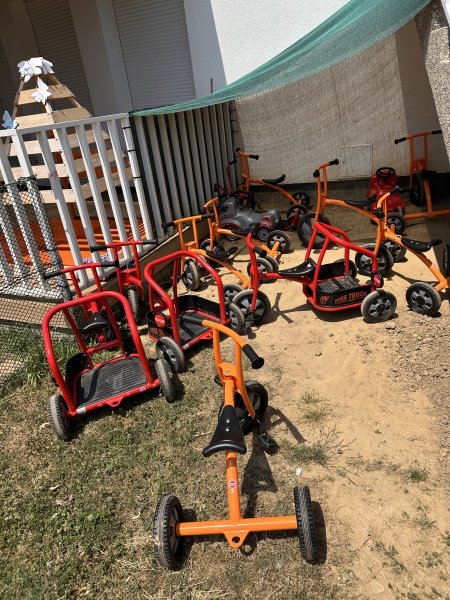 Zahvaljujući prijavi na poziv za dodjelu bespovratnih sredstava “Dostupnost kvalitetne skrbi za djecu u lokalnim zajednicama kroz poboljšanje materijalnih uvjeta u dječjim vrtićima” gradskog projekta “Kotačićima kroz vrtne staze!” nabavljene su nove igračke za djecu-bicikli, tricikli, dvorac s toboganom, vatrogasna vozila, bazeni za pijesak, guralice, košarka za male, njihalice, traktori s prikolicom, mobilne kuhinje, posuđe za kuhinju i još puno toga.