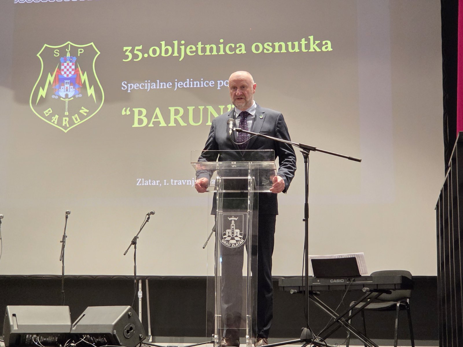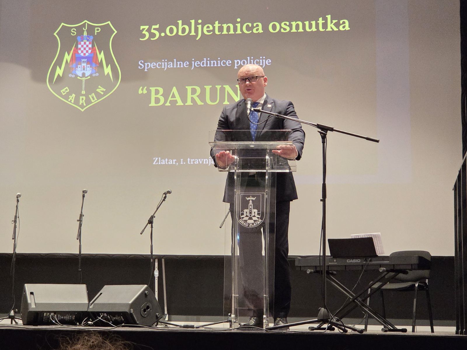 -Svima vama, koji ste bili pripadnici Specijalne jedinice policije Barun, čestitam 35. obljetnicu osnutka vaše jedinice. Okupili smo se danas ovdje u Zlataru kako bismo na svečan i dostojanstven način obilježili ovu obljetnicu te se prisjetili tih dana kada se stvarala i branila Republika Hrvatska-rekao je Bilandžić.