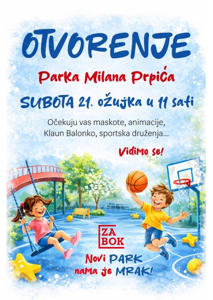 U subotu, 21. ožujka u 11 sati očekuje vas svečano otvorenje dugo iščekivanog Parka Milana Prpića.
