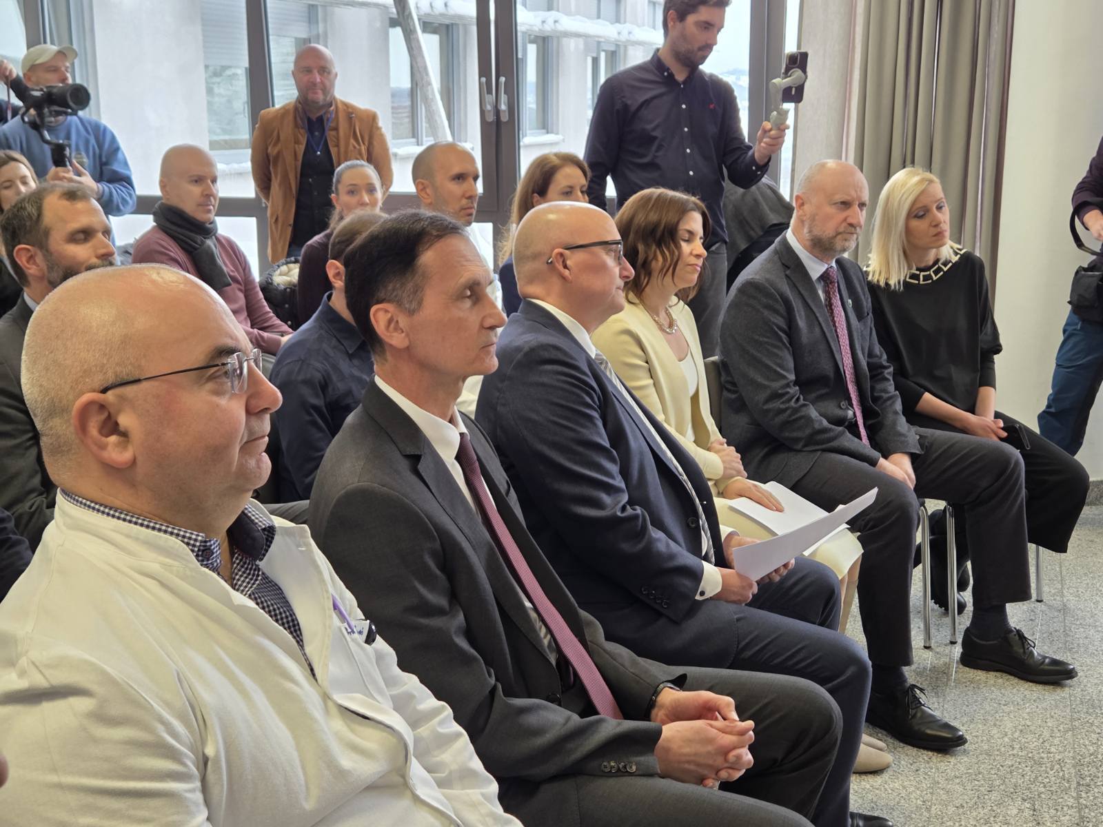 Konferenciji za medije, održanoj u Zaboku, prisustvovali su brojni gosti, među kojima župan Krapinsko-zagorske županije Željko Kolar, inicijator projekta prof. dr. Dragan Primorac, predstavnici Veleposlanstva Sjedinjenih Američkih Država, predsjednica UPMC Hillman Cancer Centara Elizabeth Wild, izvršni potpredsjednik i klinički direktor UPMC te predsjednik UPMC International prof. dr. Joel Nelson, direktor Klinike za radijacijsku onkologiju UPMC Hillman Cancer Centra prof. dr. Heath Skinner, ravnatelj UPMC Hillman Cancer Centra Hrvatska Davor Babić, ravnateljica Opće bolnice Zabok i Bolnice hrvatskih veterana dr. Andreja Filija, te predsjednik Upravnog vijeća Opće bolnice Zabok i Bolnice hrvatskih veterana Petar Vrančić. Među nazočnima su bili i general bojnik u mirovini i predsjednik Udruge dragovoljaca i veterana Domovinskog rata Krapinsko-zagorske županije mr. crim. Josip Horvatin, predsjednica Udruge P.I.N.K. Life Nives Moricz te predstavnici lokalnih veteranskih i pacijentskih udruga.