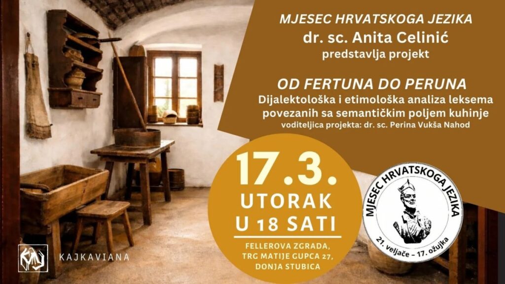 Udruga Kajkaviana poziva vas na predstavljanje znanstvenoga projekta „Od fertuna do peruna – dijalektološka i etimološka analiza leksema povezanih sa semantičkim poljem kuhinje (DIJETA)”.