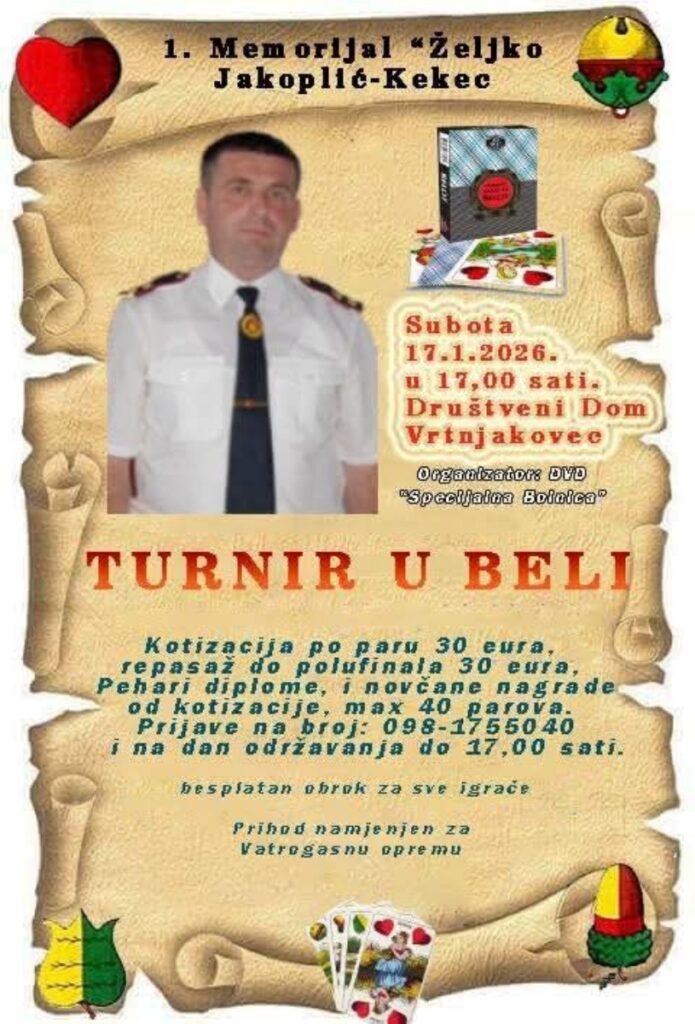 U Društvenom domu u Vrtnjakovcu, u subotu 17. siječnja 2026. godine s početkom u 17 sati, održat će se 1. memorijal „Željko Jakoplić-Kekec“.