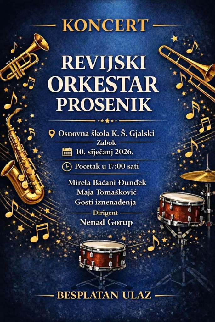 Koncert će se održati u Osnovnoj školi K. Š. Gjalski u Zaboku, u subotu 10. siječnja 2026. godine, s početkom u 17:00 sati.