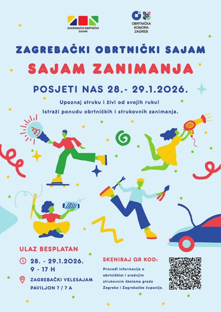 Obrtnička komora Zagreb najavila je održavanje 11. Zagrebačkog obrtničkog sajma-sajma zanimanja, koji će se održati 28. i 29. siječnja 2026. godine u paviljonima 7 i 7A Zagrebačkog Velesajma.