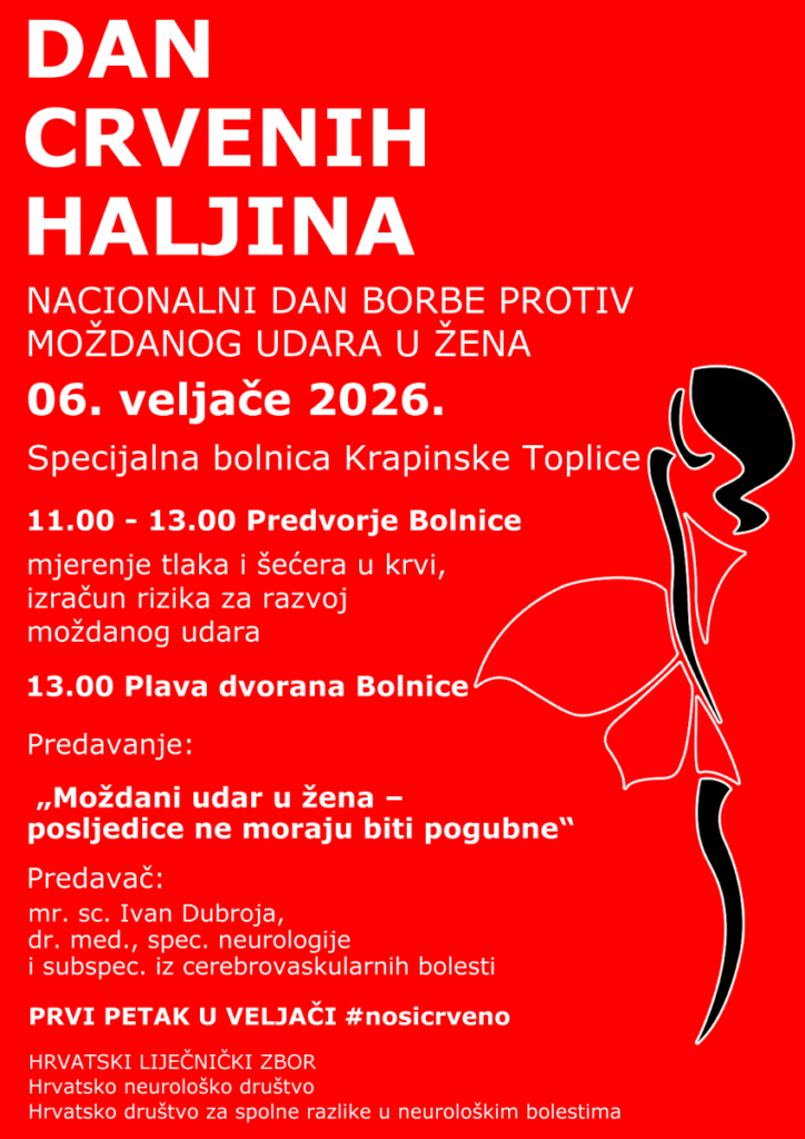 Osmu godinu zaredom, u organizaciji Hrvatskog neurološkog društva, Hrvatskog liječničkog zbora i Hrvatskog društva za spolne razlike u neurologiji, obilježava se Nacionalni dan borbe protiv moždanog udara u žena, poznat i kao javnozdravstvena akcija „Dan crvenih haljina“.