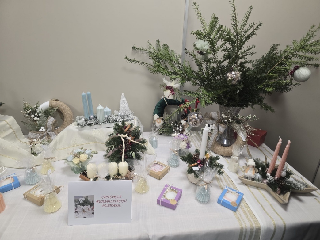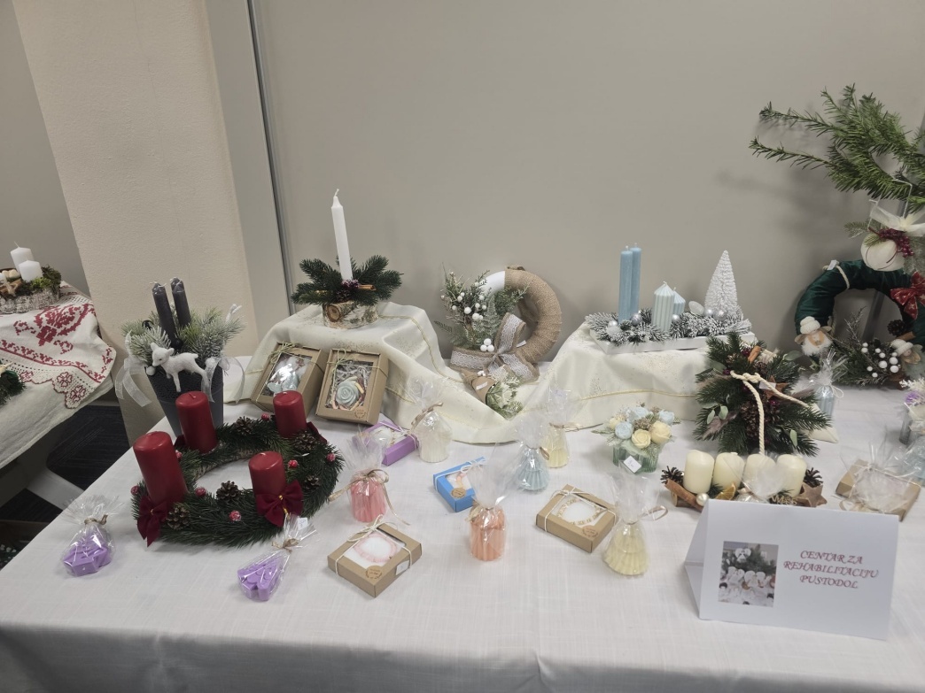 -Ovo je naša već tradicionalna izložba nazvana “Ususret Došašću”. Osim članica udruge koje se uvijek predstavljaju ručnim radovima s božićnim motivima i božićnim vijencima, na izložbi sudjeluju i učenici OŠ Vladimir Bosnar, polaznici DV-a Zvirek, ali i naše umjetnice te štićenici Centra za rehabilitaciju Pustodol-rekla je Gmaz istaknuvši kako je prostorija ponovo “okupana” bojama predblagdanskog vremena.