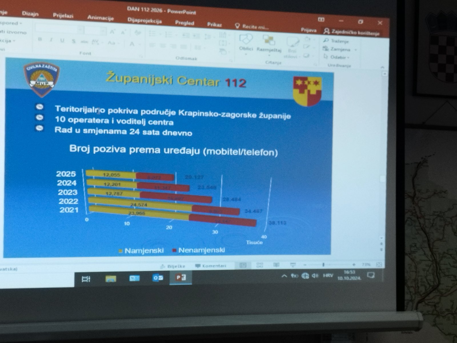 Protekle godine Služba u Krapini imala je oko 20.000 poziva, od čega 12.000 namjenskih, dok su ostali bili nenamjenski. Napomenuto je kako je vidljiv i pad broja poziva, čemu je uvelike doprinijela edukacija te svijest ljudi.