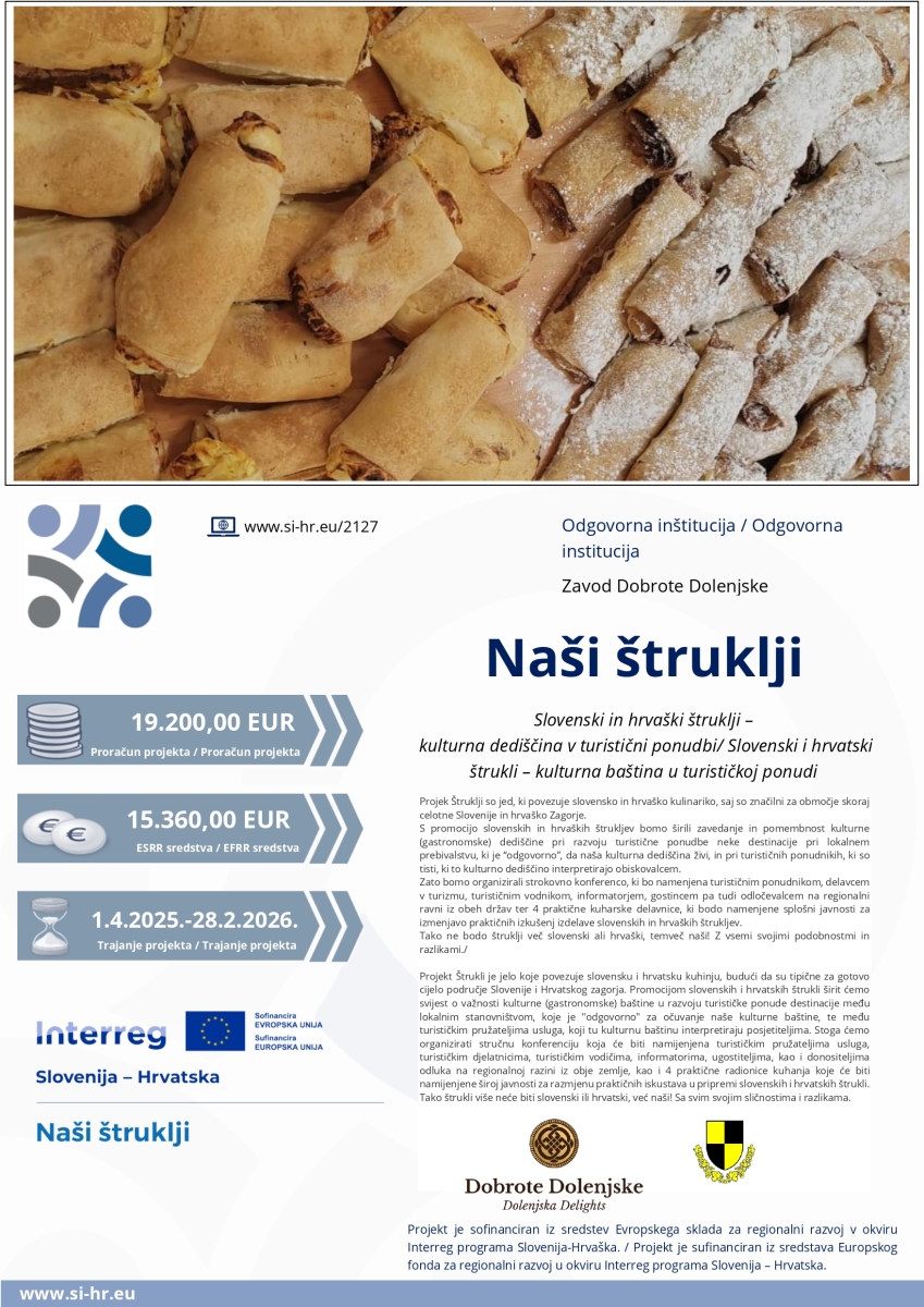 Projekt „Naši štruklji – slovenski i hrvatski štrukli kao kulturna baština u turističkoj ponudi“ kroz svoje aktivnosti povezuje tradiciju, znanje i međugraničnu suradnju, s ciljem očuvanja i promocije zajedničke gastronomske baštine Hrvatske i Slovenije.