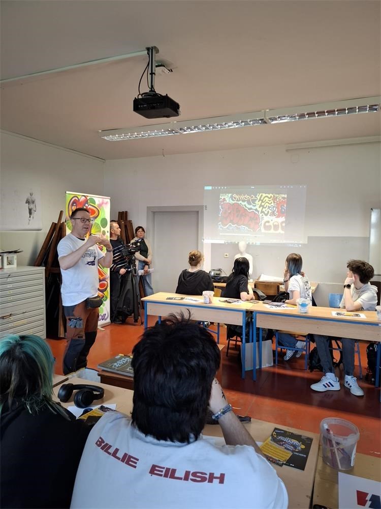 Uslijedila je interaktivna radionica pod nazivom „Grafiti mogu biti umjetnost, a ne vandalsko ponašanje“ poznatog grafitera Krešimira Golubić s ciljem podizanja svijesti i sučeljavanje s problemom govora mržnje te su učenici na naučili razliku između grafita kao umjetničkog izraza i grafita koji se smatra vandalizmom. Učenici su uspješno svladali osnovne tehnike crtanja i pravilnog rukovanja bojama i sprejevima. Rezultat njihovog rada je grafit s porukom „ZAJEDNO“ oslikan na platnu na školskom dvorištu koji žele podijeliti sa svojim sugrađanima, kolegama učenicima i profesorima, istovremeno poštujući svoju okolinu.