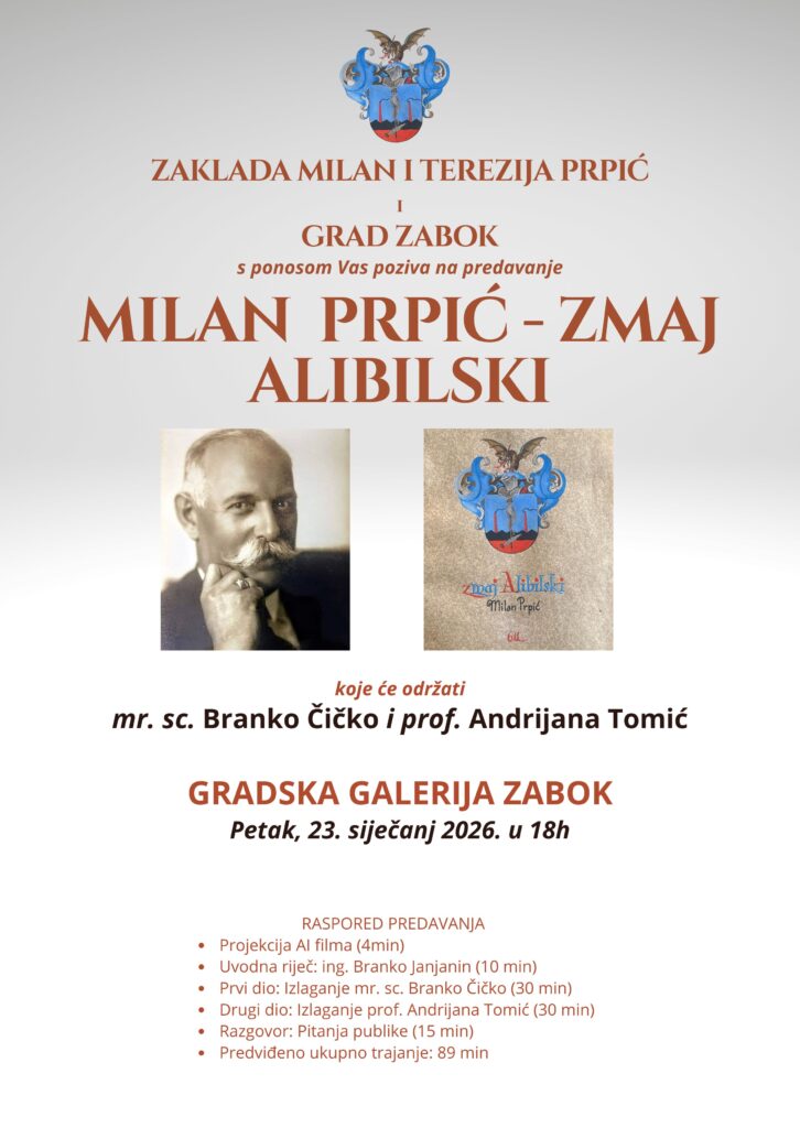 Zaklada Milan i Terezija Prpić u suradnji s Gradom Zabokom poziva građane na zanimljivo i sadržajno predavanje posvećeno iznimnoj, ali široj javnosti nedovoljno poznatoj povijesnoj ličnosti – Milanu Prpiću, poznatom kao Zmaj Alibilski.