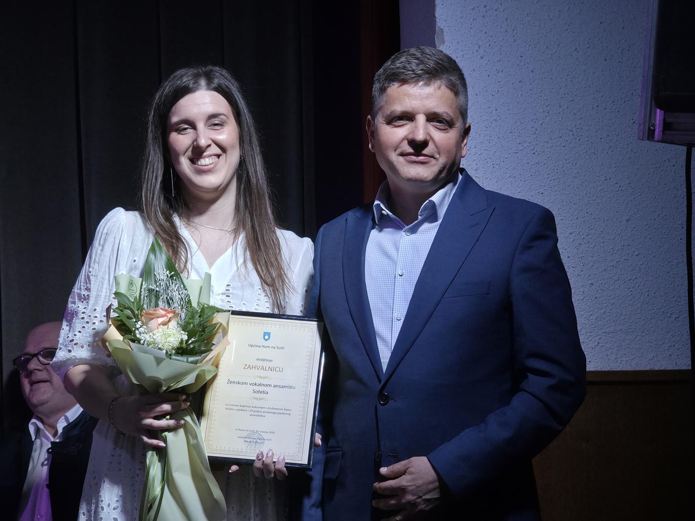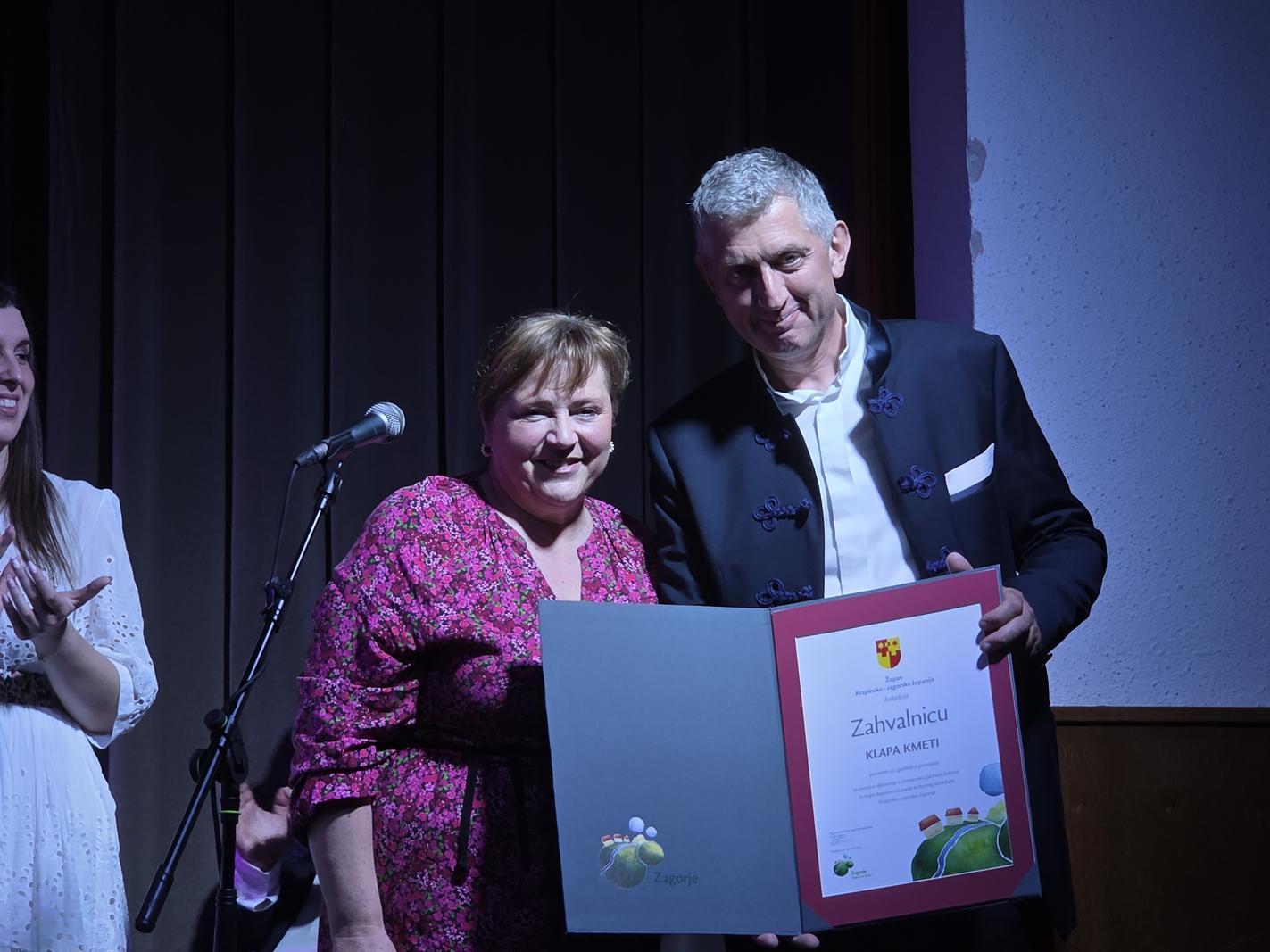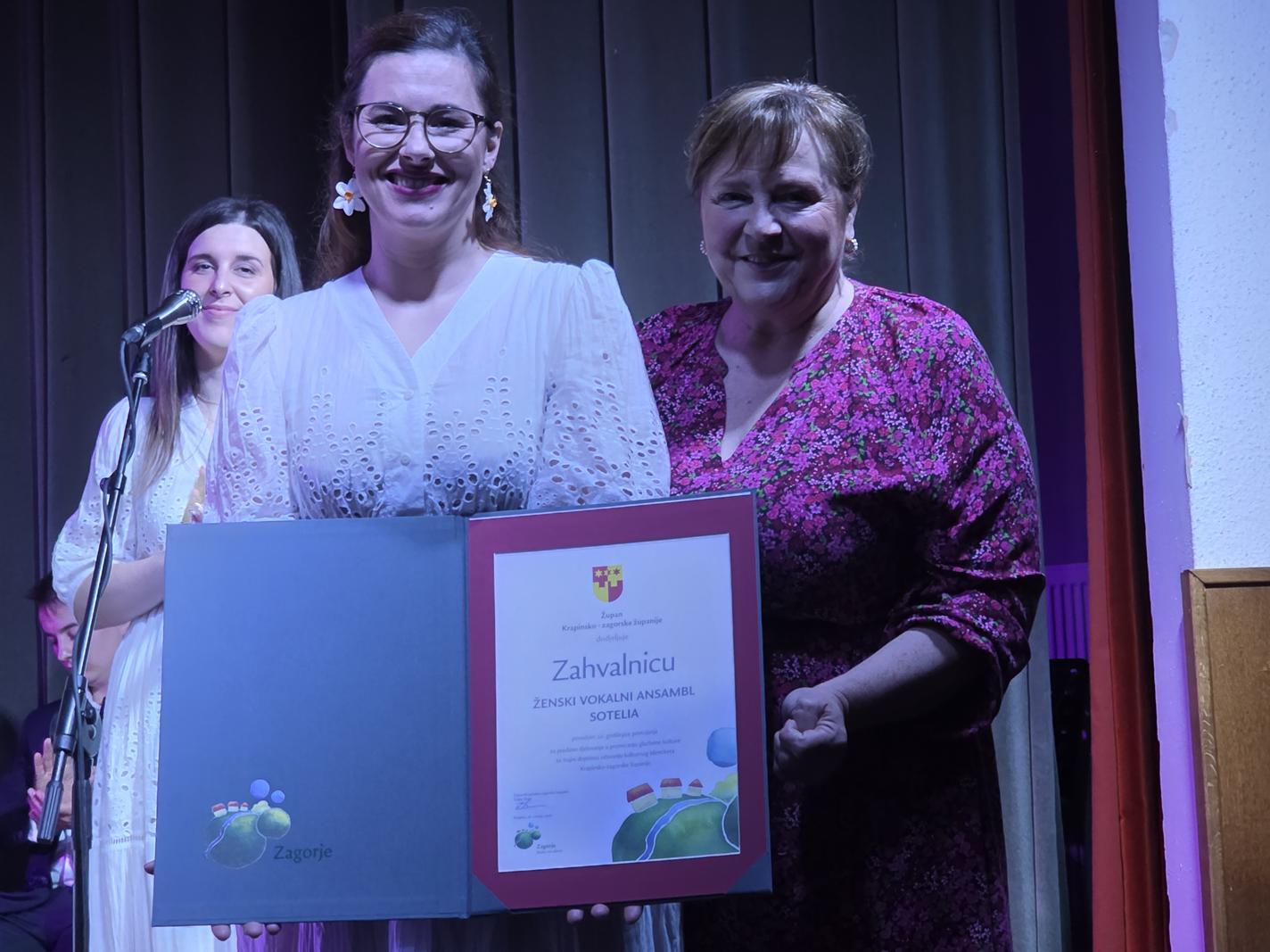 Koncertu je prisustvovala i zamjenica župana Jasna Petek koja je ovom prigodom u ime župana Željka Kolara Ženskom vokalnom ansamblu Sotelia i Klapi Kmeti uručila zahvalnice Krapinsko-zagorske županije povodom 20 godina postojanja i predano djelovanje u promicanju glazbene kulture te trajni doprinos očuvanju kulturnog identiteta Krapinsko-zagorske županije.